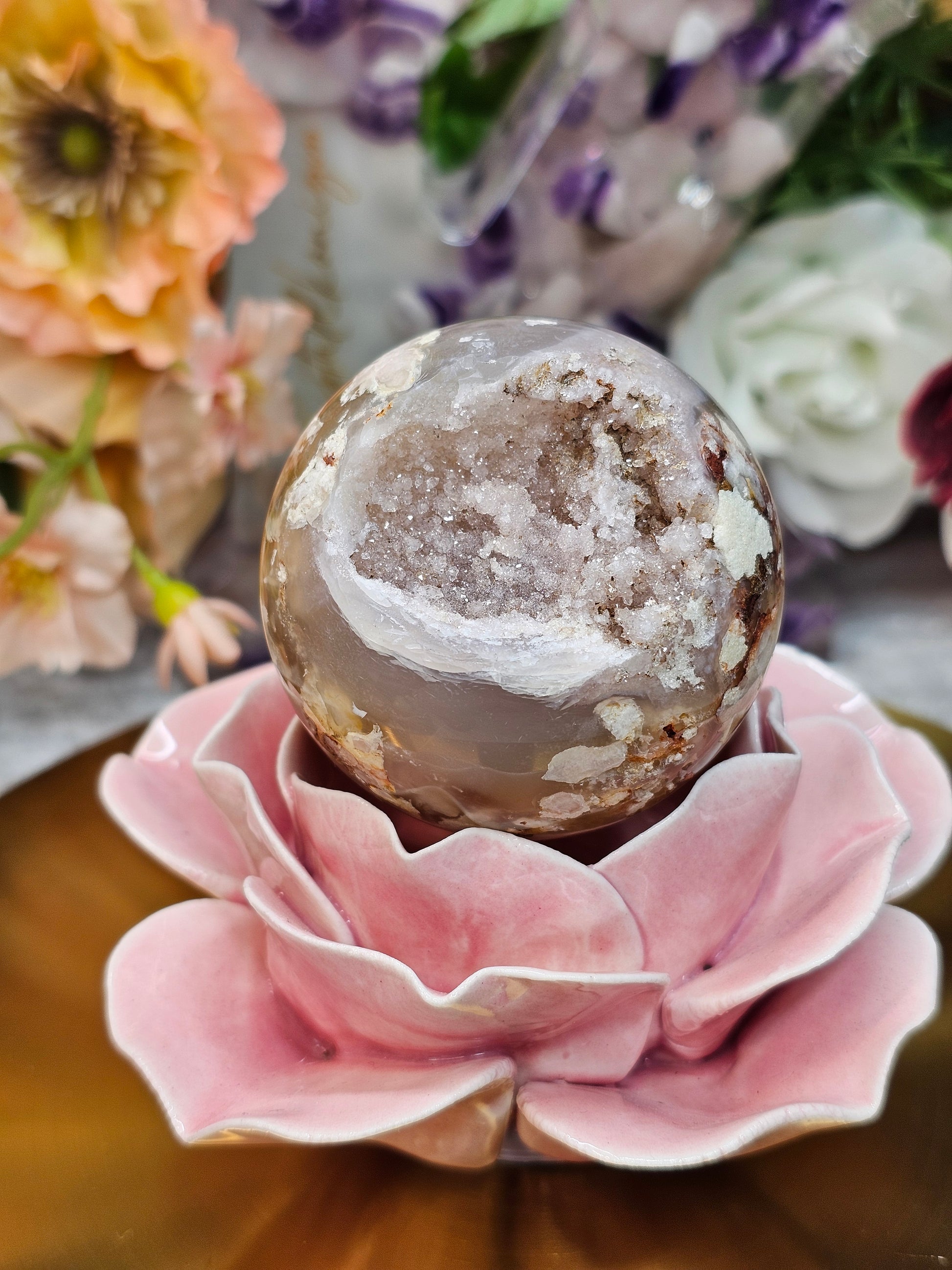 Blumenachat Druzy Kugel 46iba