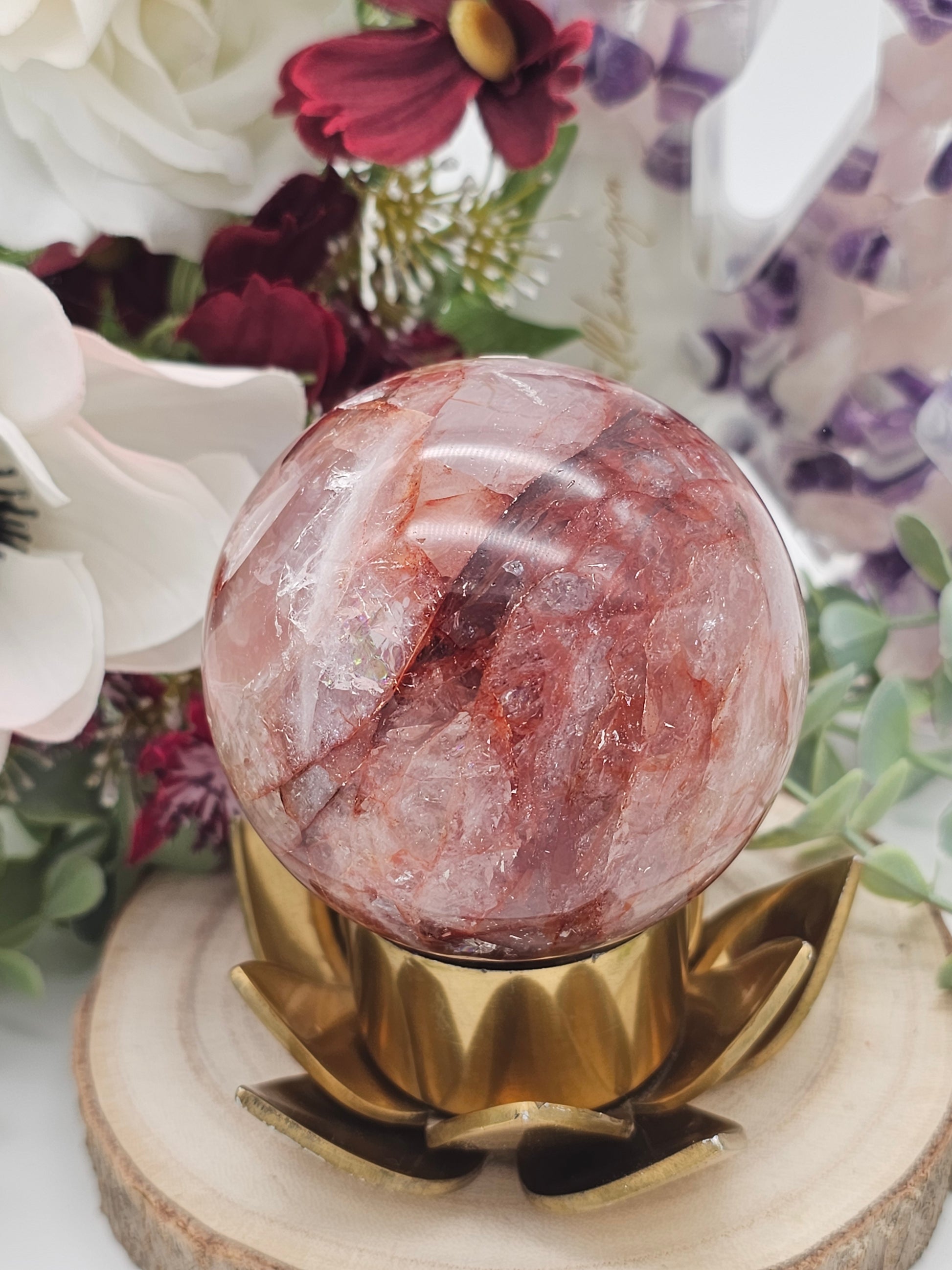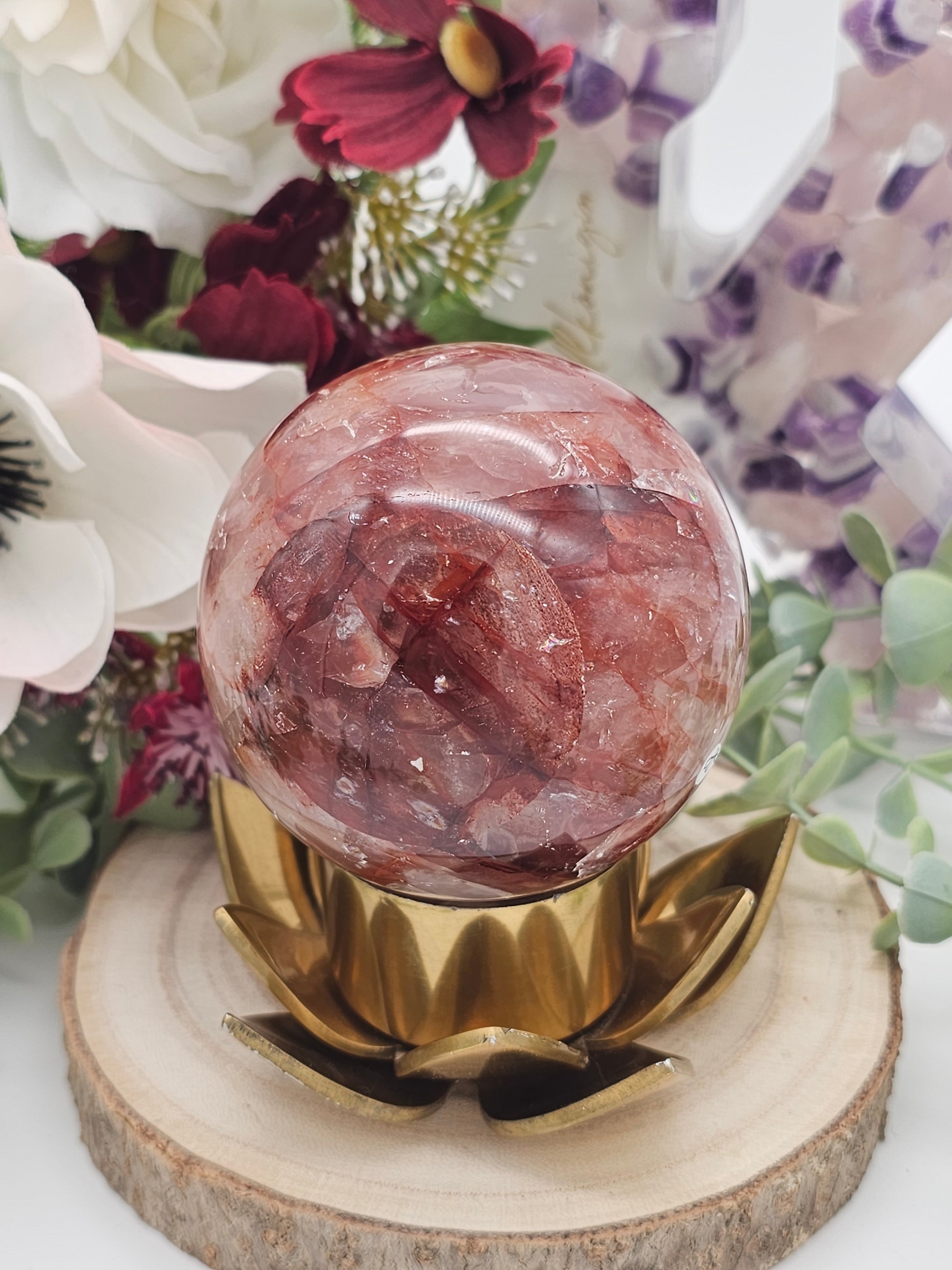 Super schöne Feuerquarz Kugel mit Regenbogen.