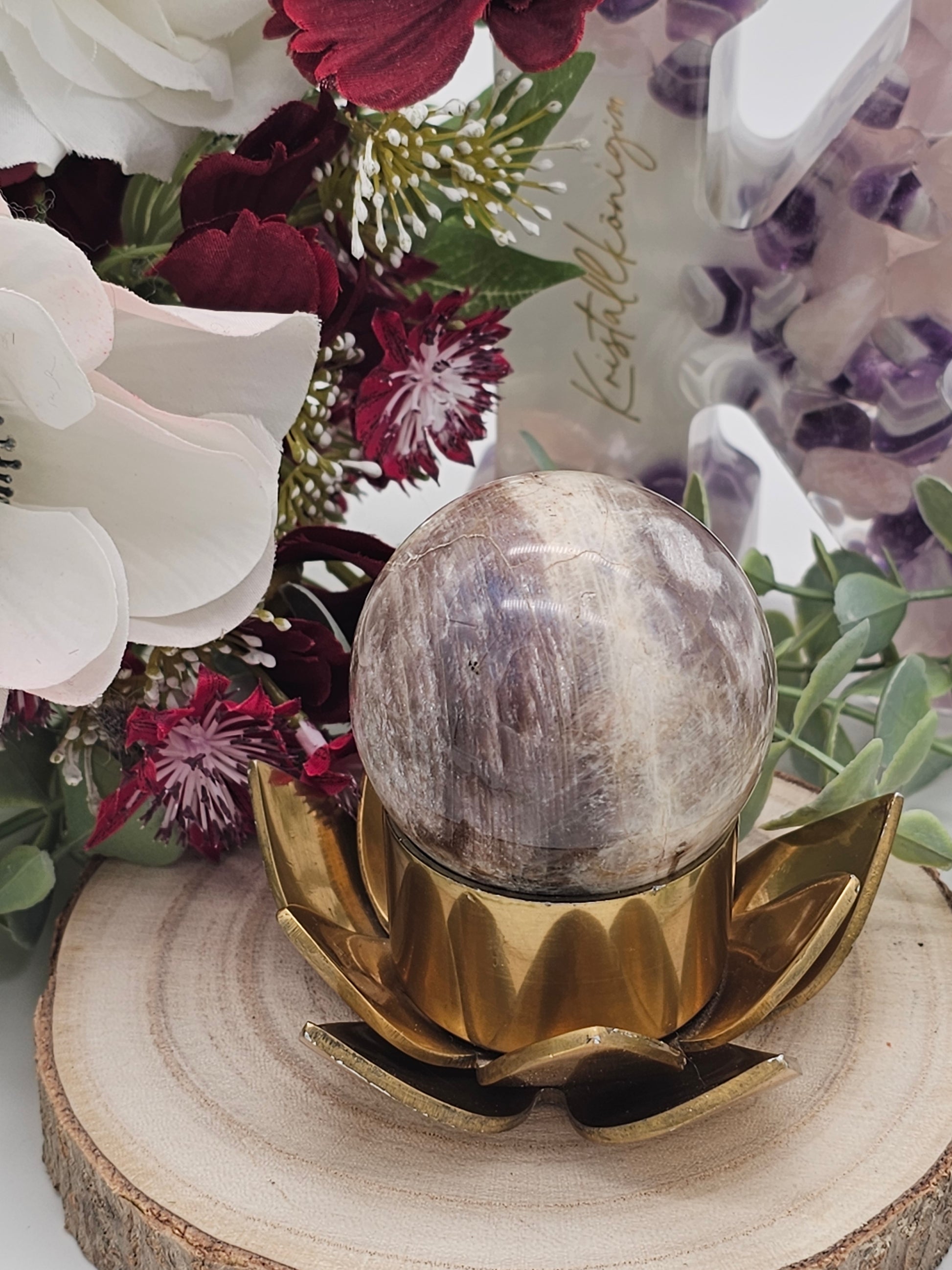 Einzigartige Kugel mit blauen und silbernen Mondstein Schimmer. Bunter Sonnenstein Schimmer ist ebenfalls vorhanden. Kugel ist nicht 100% glatt poliert.