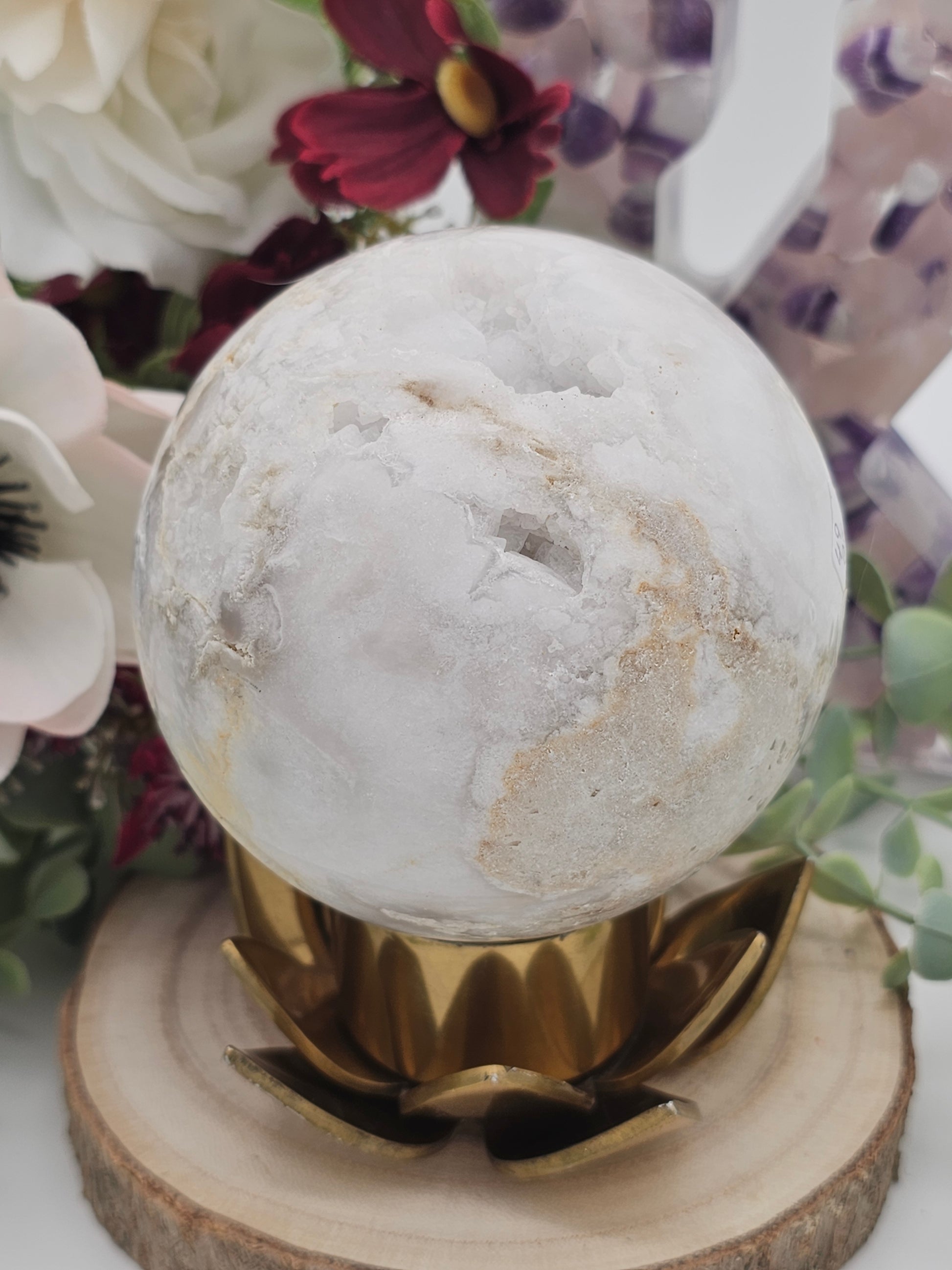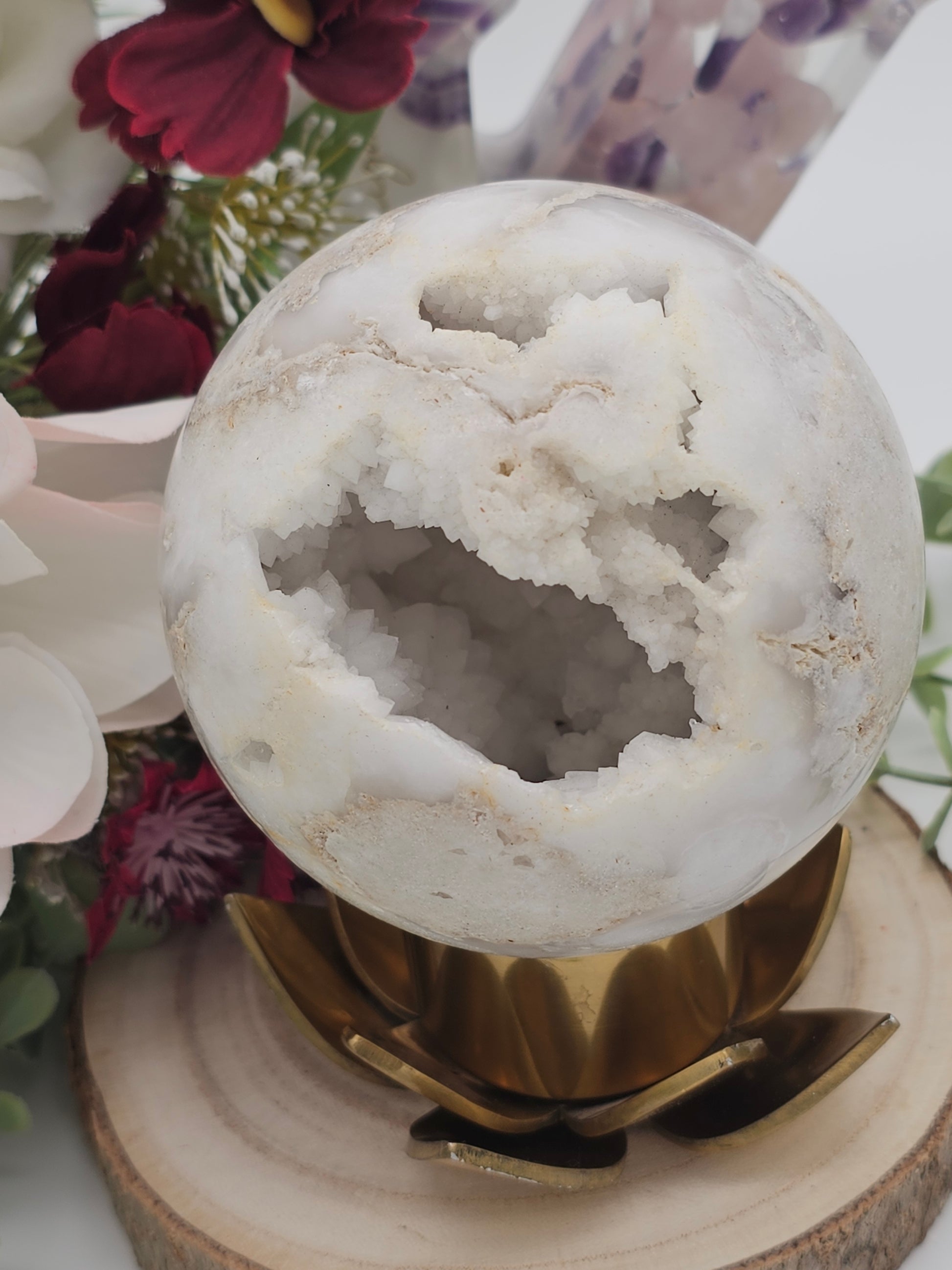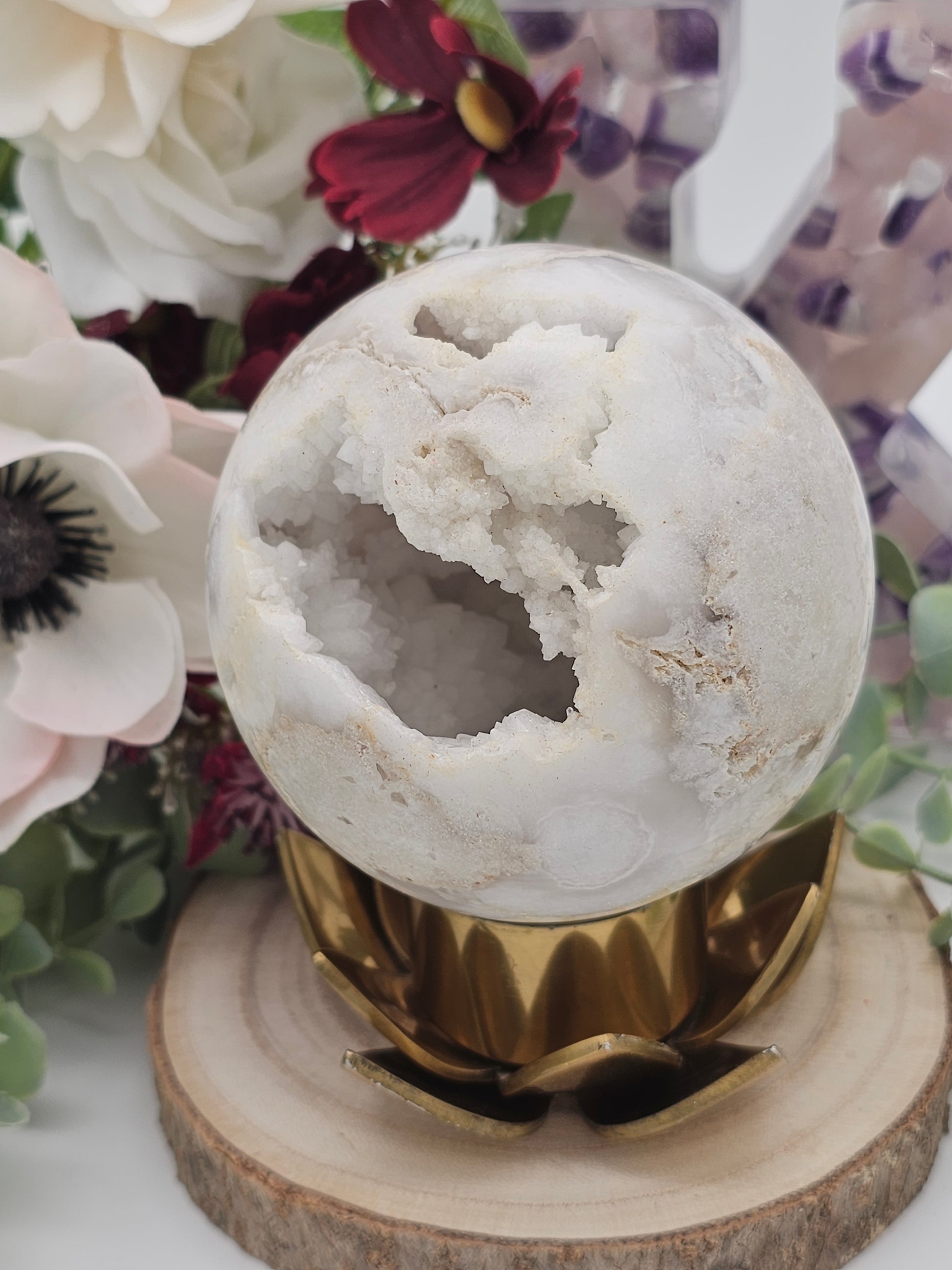 Aus einer Quarzgeode wurde aufwendig eine Kugel geschliffen. Diese hat eine super tolle und große Druse.