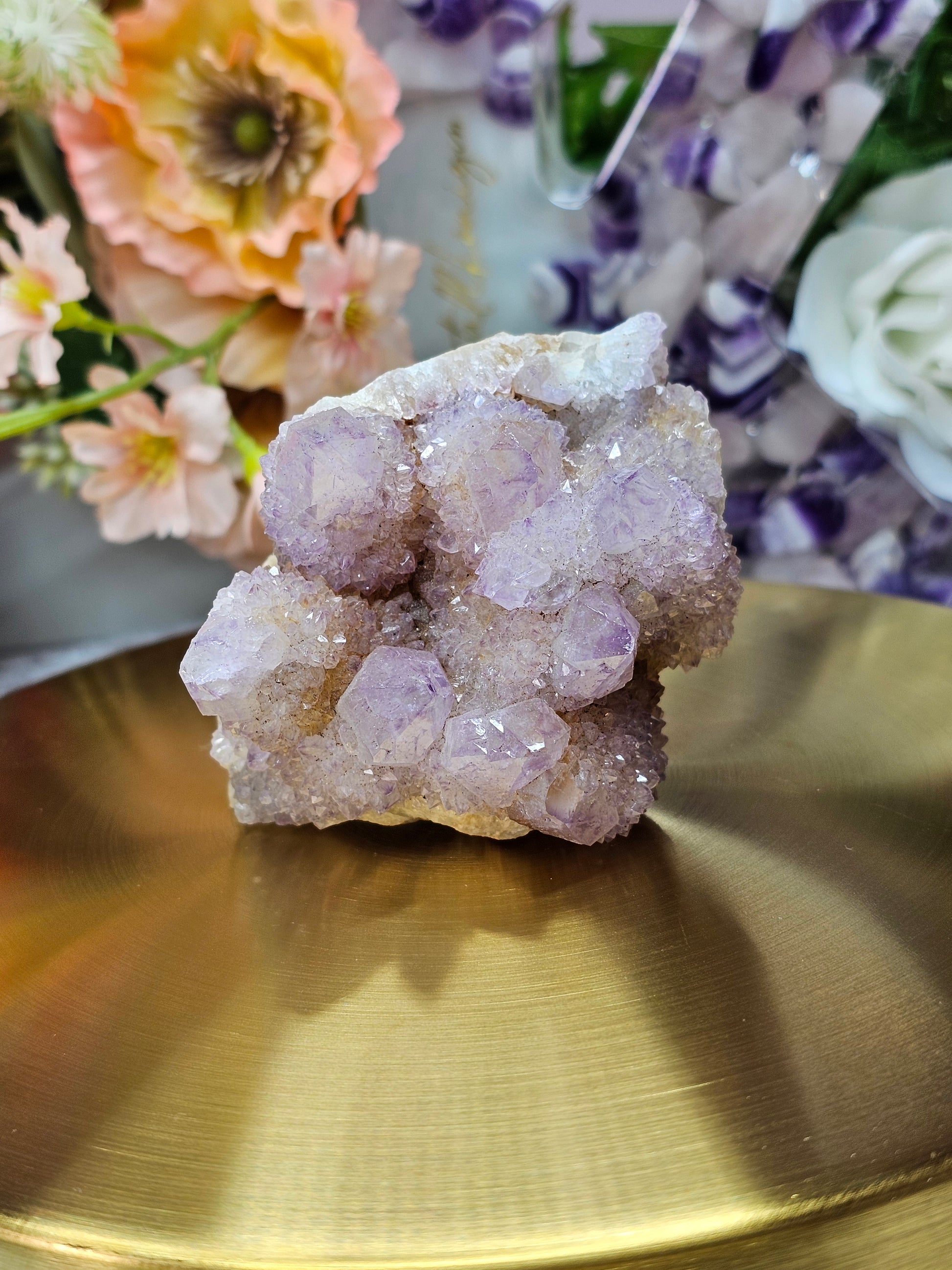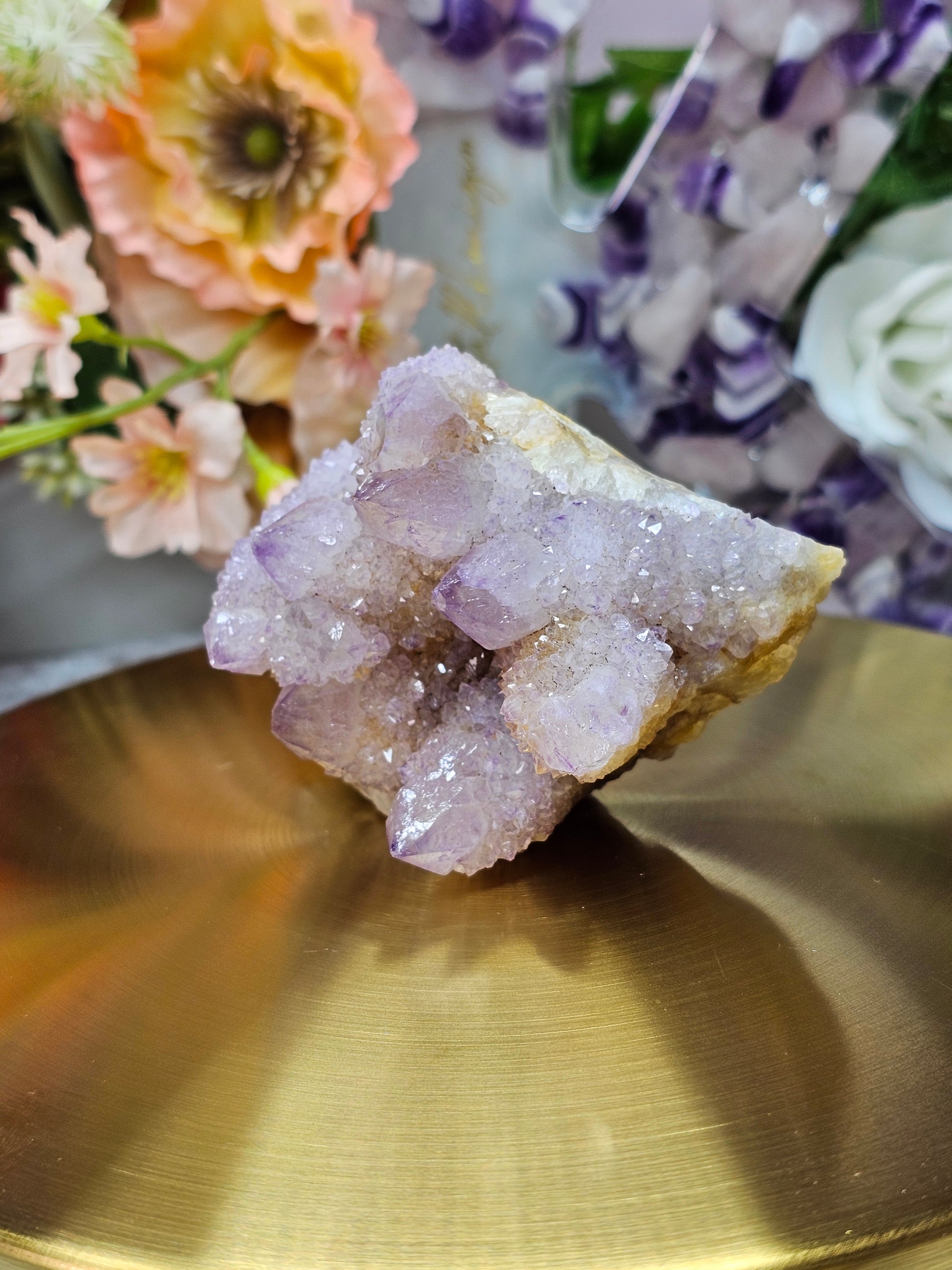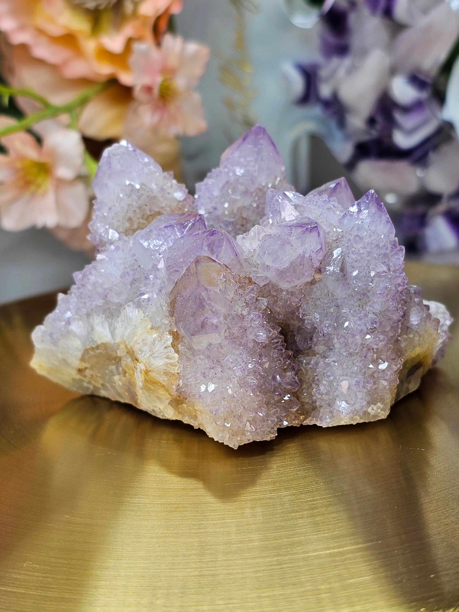 Diesen natürlichen Spiritquarz kann man auf verschiedenen Weisen hinstellen. Er funkelte und glitzert.